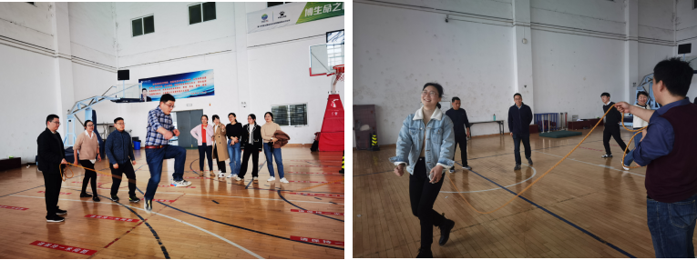 集体跳绳比赛中,每个系部都派出精兵强将,在比赛中学习跳绳技巧、比拼耐力,每支队伍都赛出了最好成绩。在场边助阵的啦啦队竭力大喊“加油加油”,口号声、呐喊声、欢笑声,此起彼伏,在活动现场回荡。