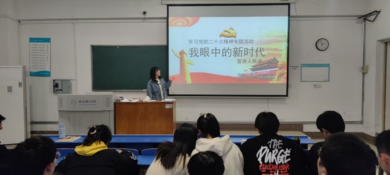 11月30日下午,tyc41183太阳成集团学生党支部在锦绣校区开展“我眼中的新时代”——学习贯彻党的二十大精神专题宣讲活动,学生支部全体党员参加活动。活动由学生第二党支部书记韩翔主持,学院党委副书记吴震出席活动。