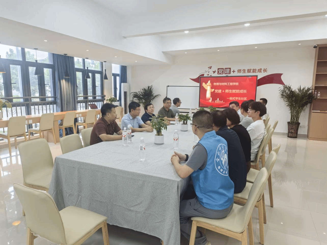 9月9日,校党委副书记梁立昌、副校长华银峰、副校长赵邦恚一行来到学院“党建+”师生赋能成长学生一站式社区,现场指导工作。党政办公室、滨湖综合管理办公室、团委、学生工作部、资产管理处、后勤处等部门负责人参会。