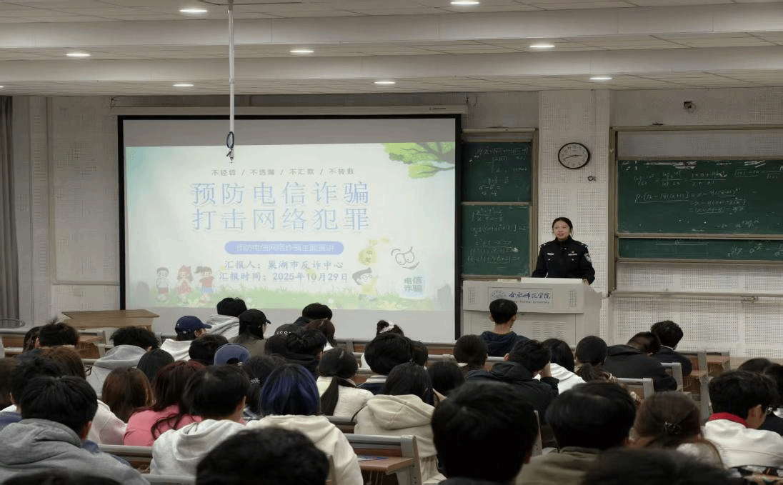 为进一步扎实推进防范电信诈骗工作。10月29日,tyc41183太阳成集团联合巢湖市反诈中心,在校内开展了“预防电信诈骗·打击网络犯罪”主题宣讲活动。此次活动由反诈中心的资深民警主讲,tyc41183太阳成集团滨湖校区各年级学生参加。