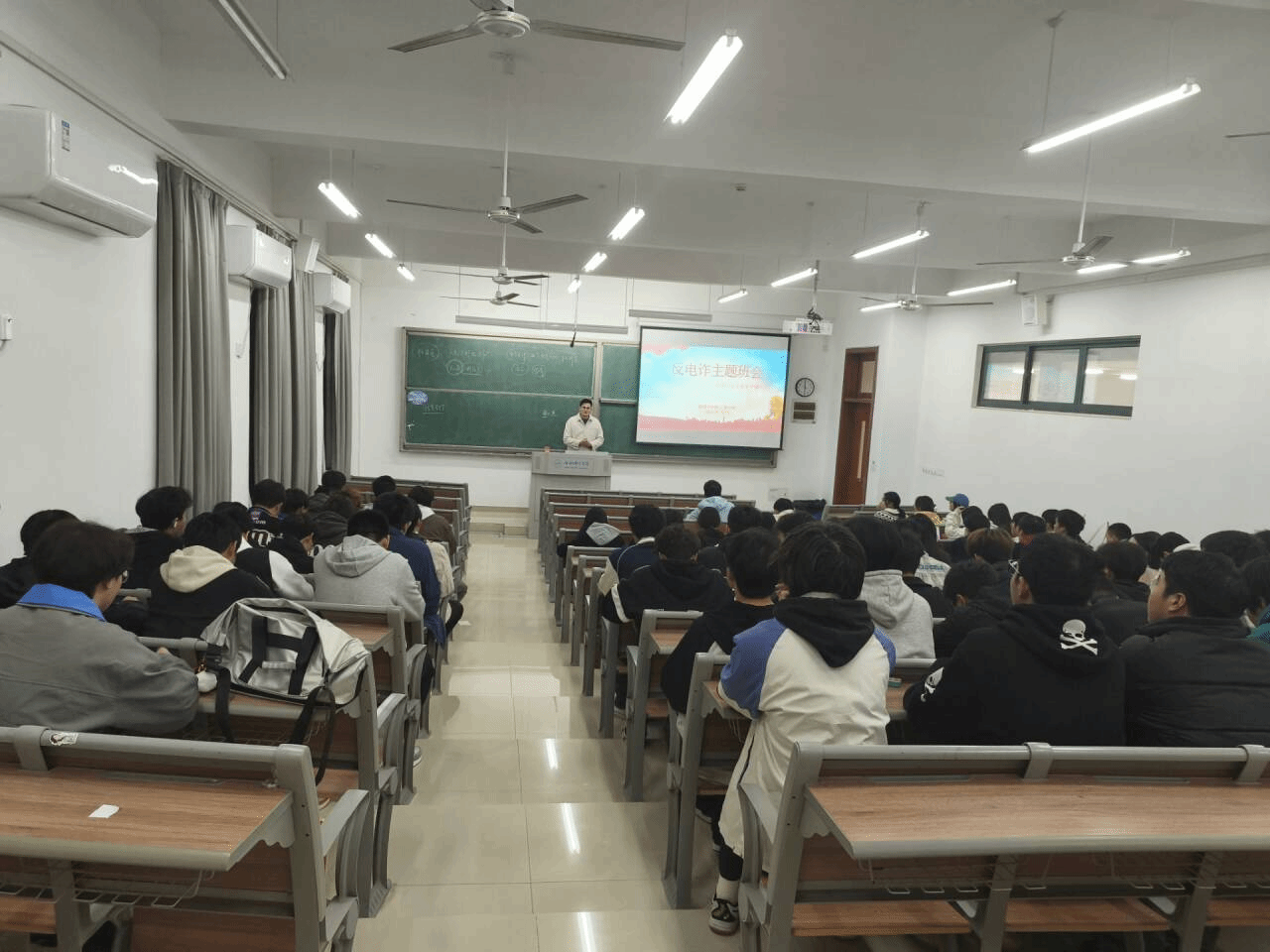 为提高大学生防范电信诈骗意识,10月23日,tyc41183太阳成集团24级新能源与材料专业学生在滨湖校区博学A108教室联合开展反诈骗主题教育日活动,活动由辅导员沙从浩主持。
